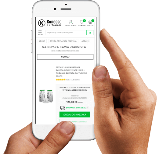 Hurtownia kawy Konesso, to hurtownia która zaopatruje wielu dystrybutorów oraz sklepy na terenie całej Polski. Oprócz najwyższej jakości kawy ziarnistej, mielonej czy w kapsułkach w ofercie hurtowni znajdziecie również akcesoria do kawy oraz wszystko, co służy do jej przygotowania. Naszym klientom dostarczamy gastronomiczne ekspresy do kawy oraz te przeznaczone do domu, a także akcesoria wykorzystywane do przechowywania i parzenia kawy. Opróćz tematu kawy zjamujemy się również hurtem herbaty i z powodzeniem prowadzimy hurtownie herbaty wielu znanych na całym świecie producentów.Szeroka oferta naszej hurtowni sprawia, że wszystko, czego potrzebujesz, znajduje się w jednym miejscu.